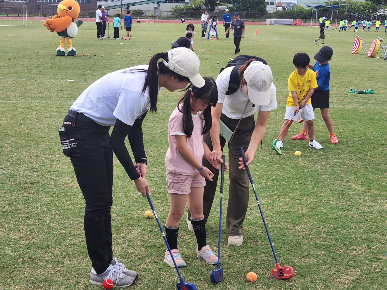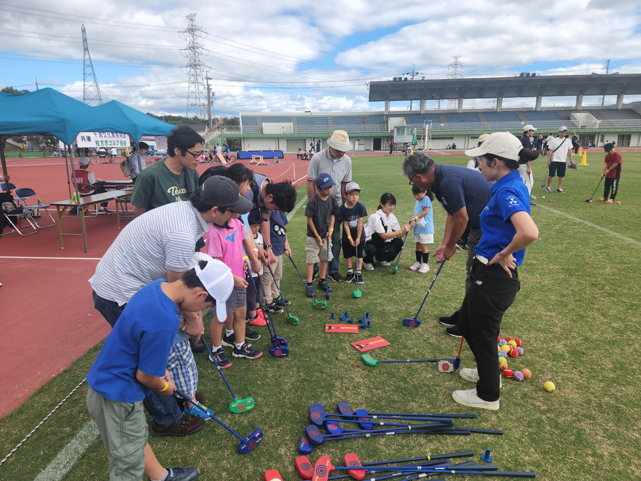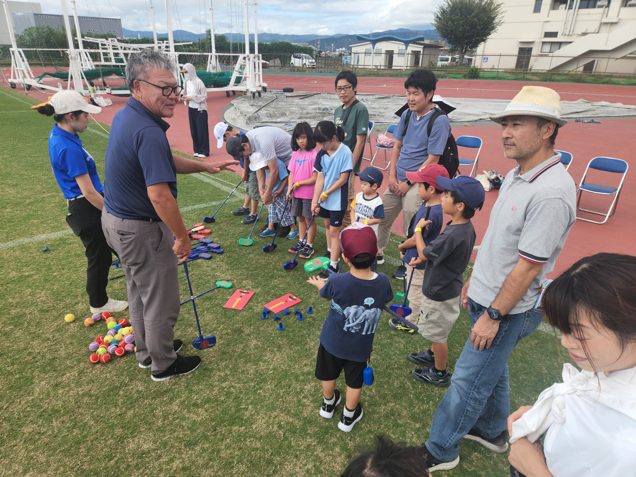 午前の部87組と午後の部63組の合計150組の小学生や幼児と親御さんの方々にスナッグゴルフを体験頂きました。
