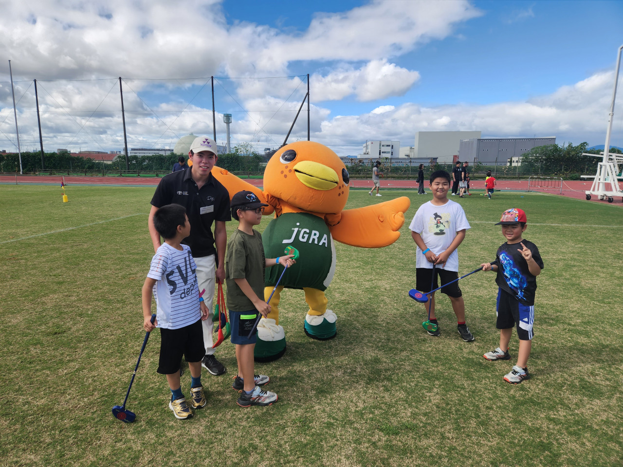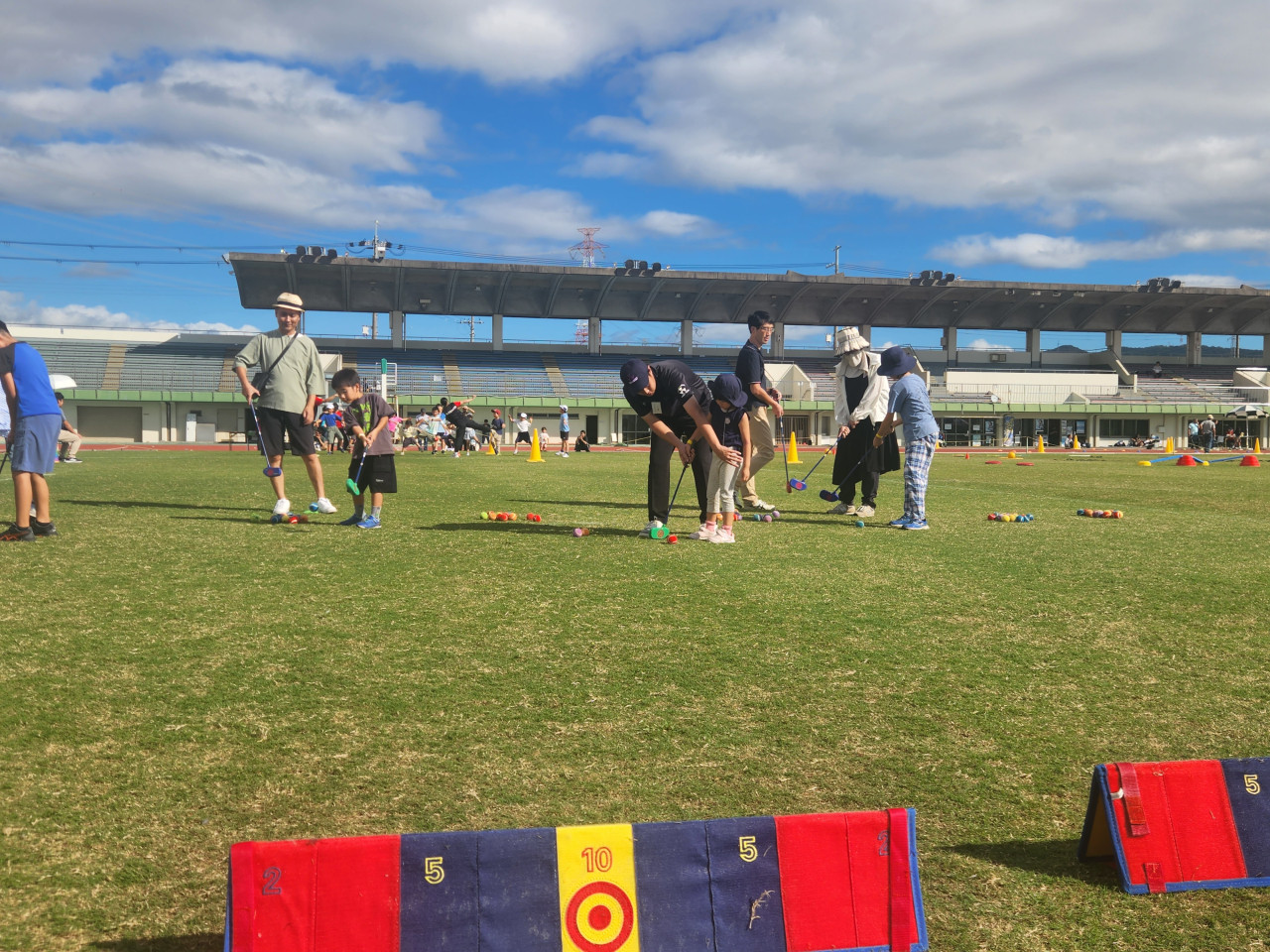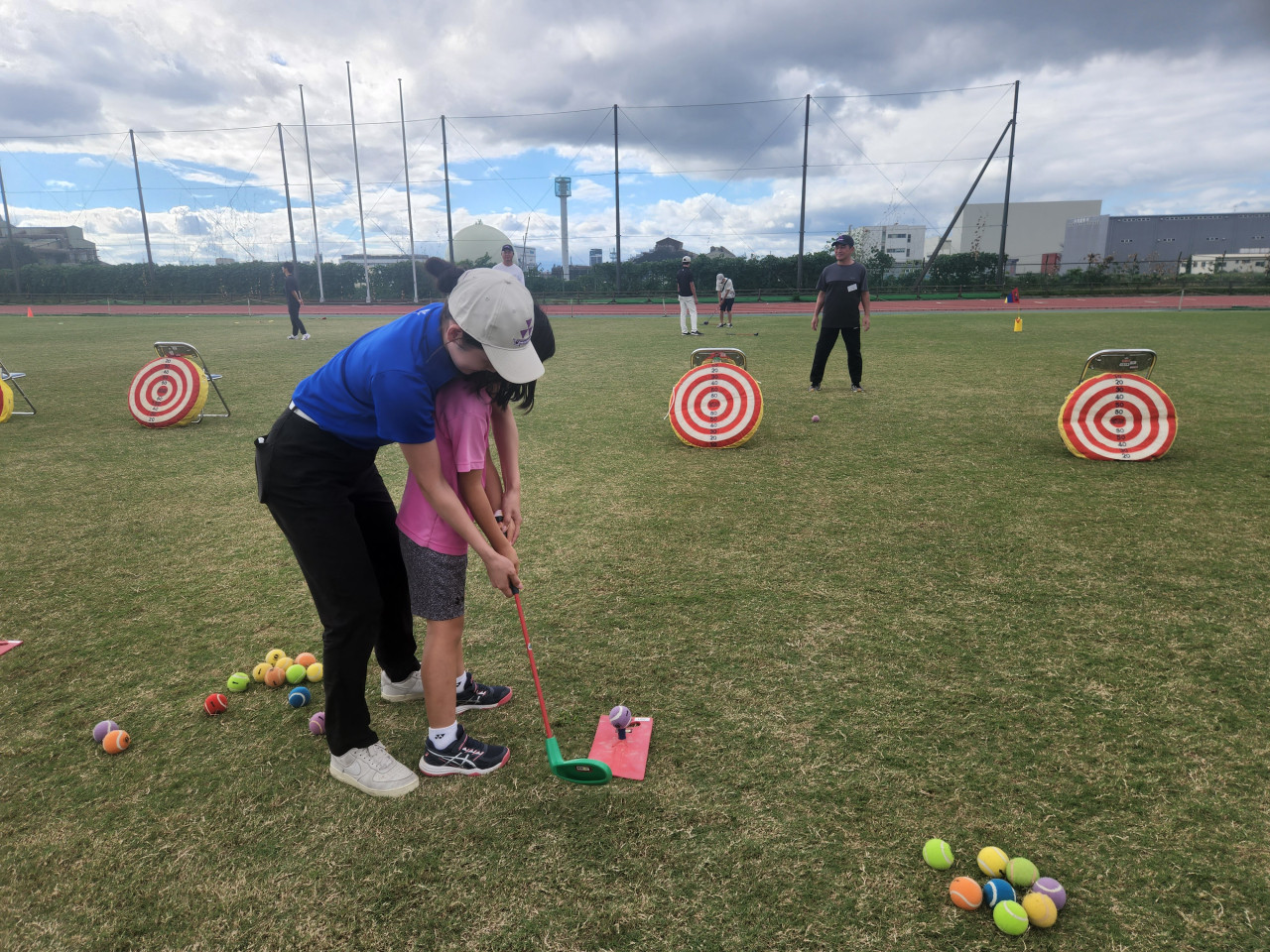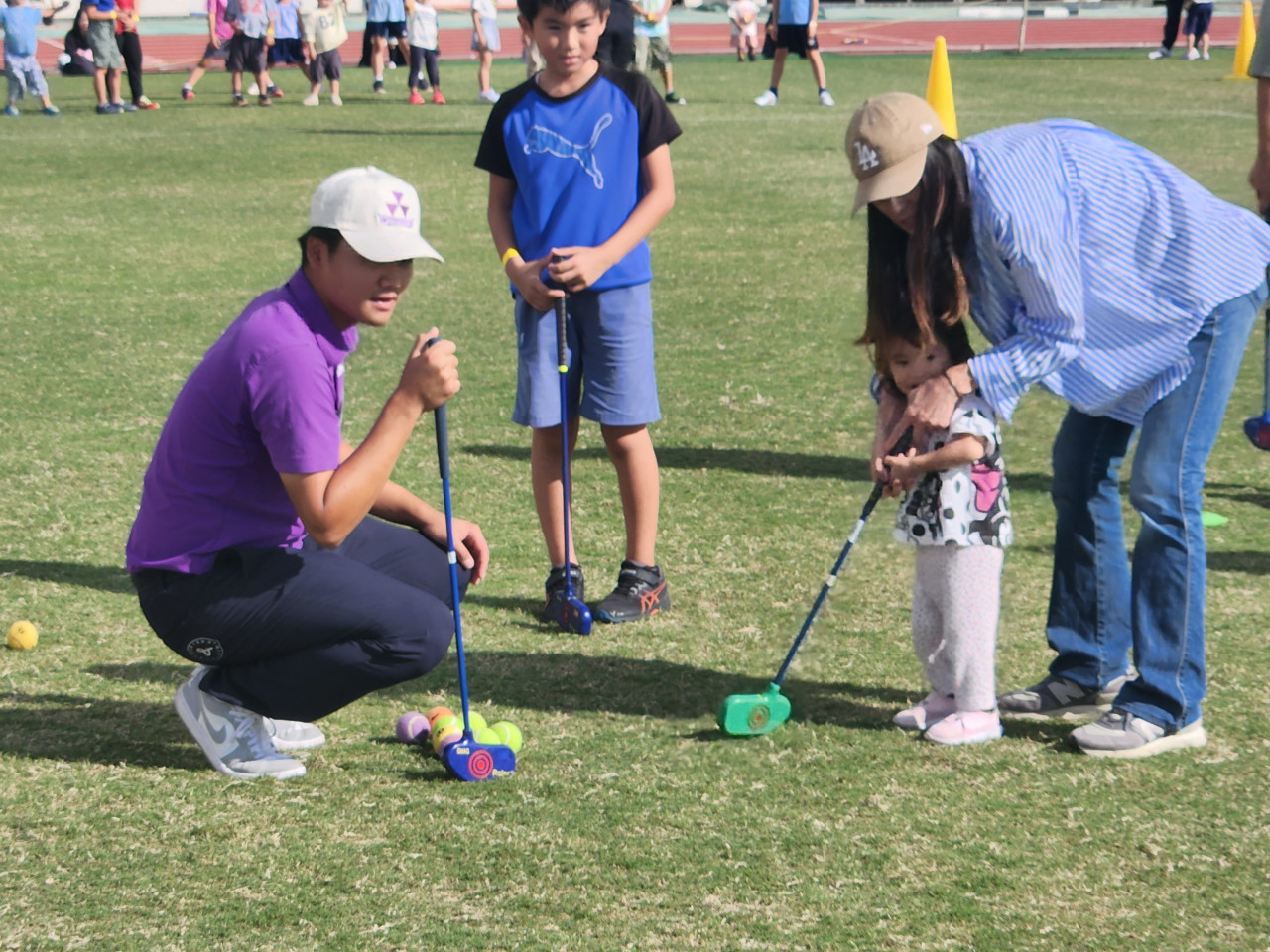 午前の部87組と午後の部63組の合計150組の小学生や幼児と親御さんの方々にスナッグゴルフを体験頂きました。